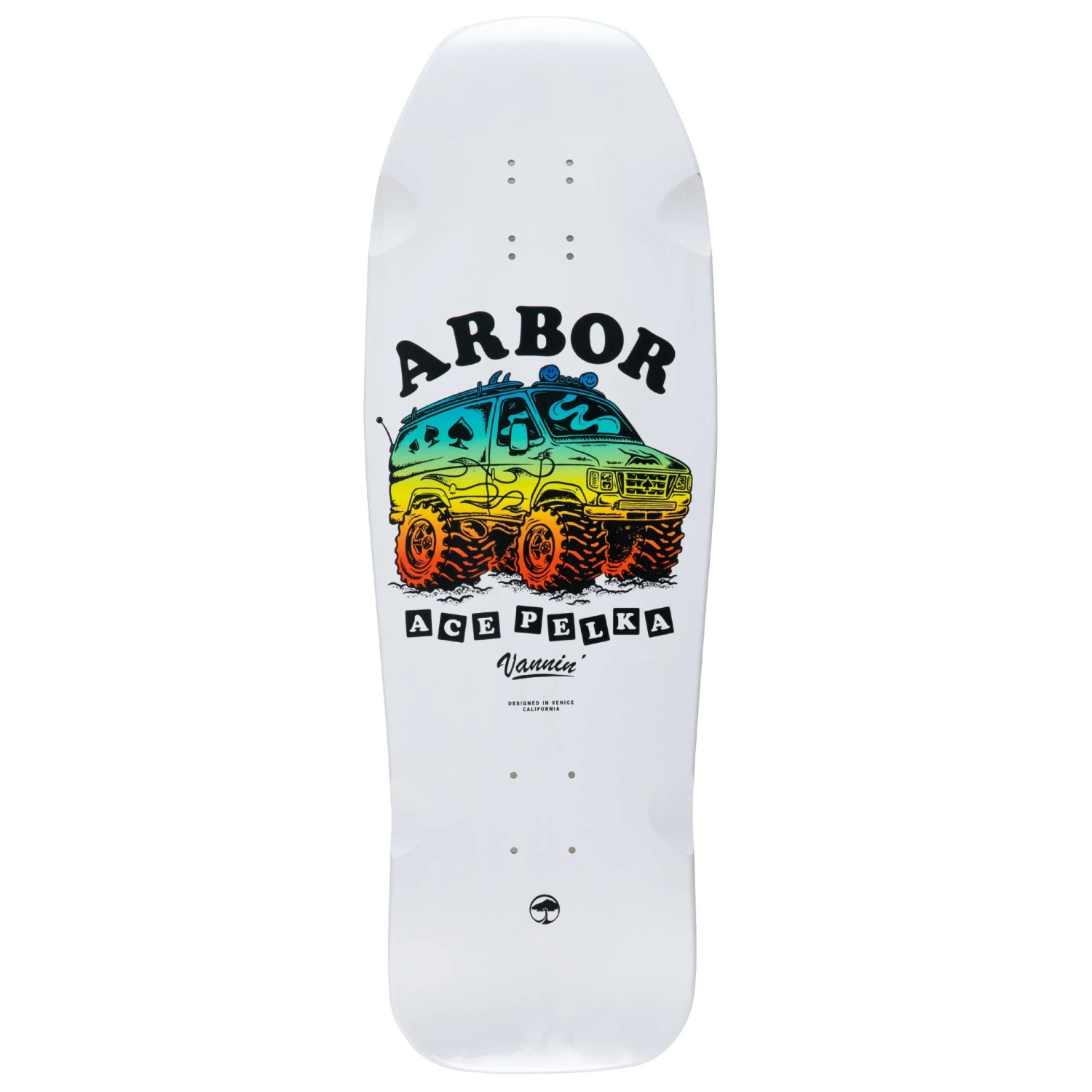 Ace Pelka’s shaped deck is built with a medium concave to provide a balance of board feel. Aceโs first pro deck series for Arbor features a 10โ wide shaped deck with a blunt hammer shaped nose, wide platform and shorter wheelbase for street skating and tight transition.
