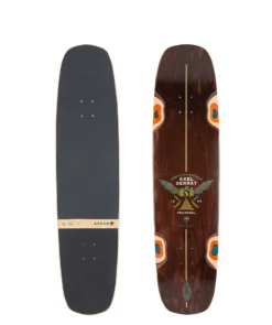 Axel Serrat’s signature shape with a mellow concave and multiple wheelbase options make this a versatile hybrid for flatground, downhill, and tricks at speed.