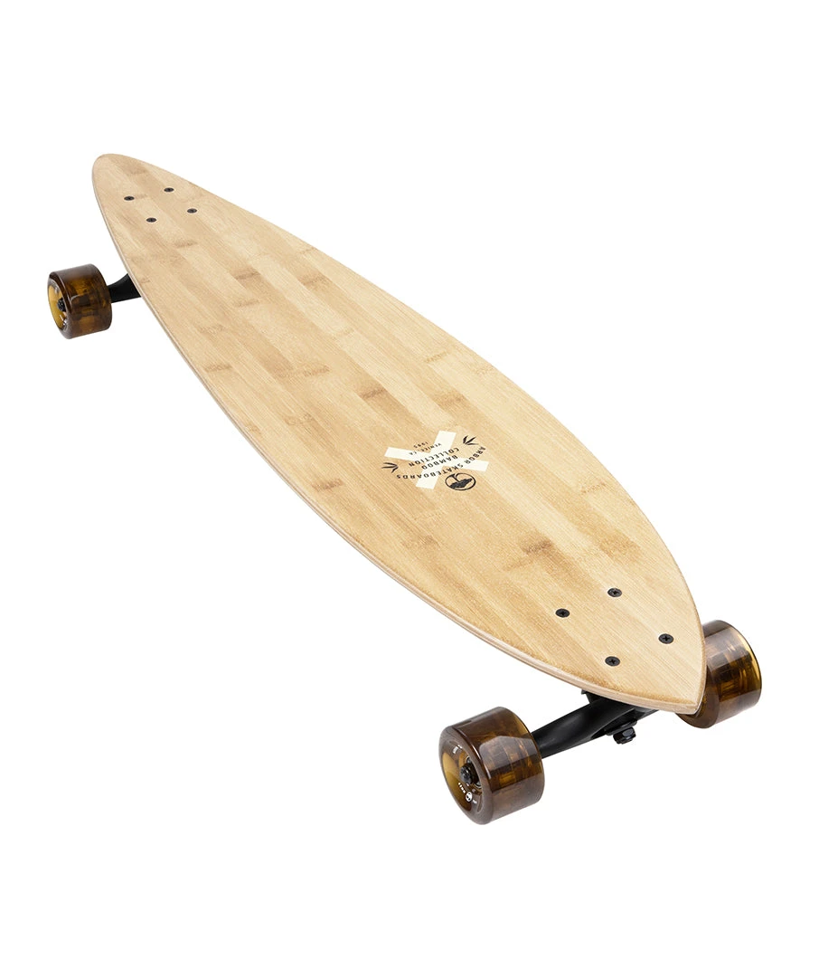 A compact pintail with an extended wheelbase and mellow flex for around town cruising and lower speed carving.