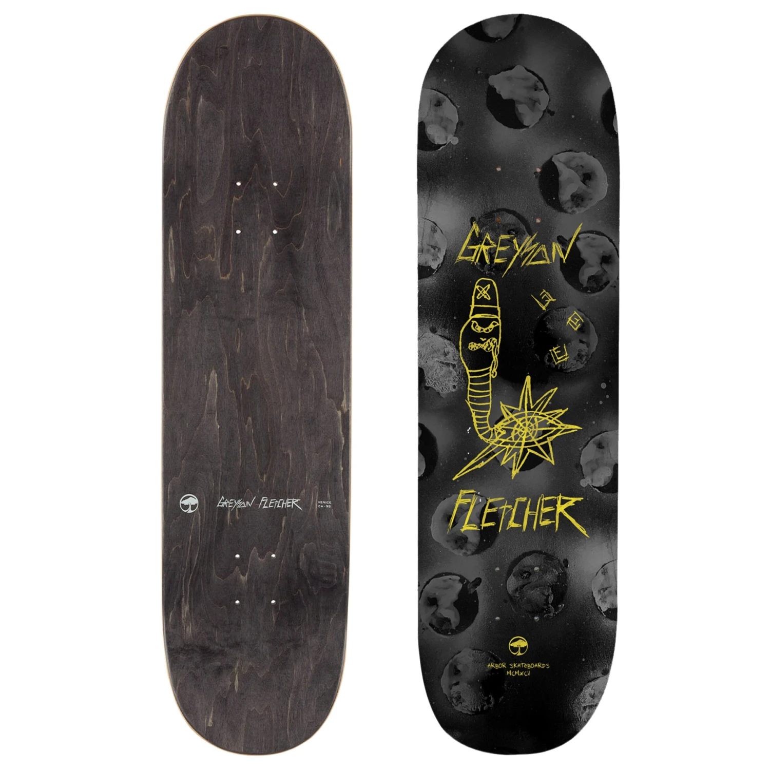 Greyson Fletcher’s shape is built with a medium concave to provide a balance of board feel, while allowing mobility with foot placement.