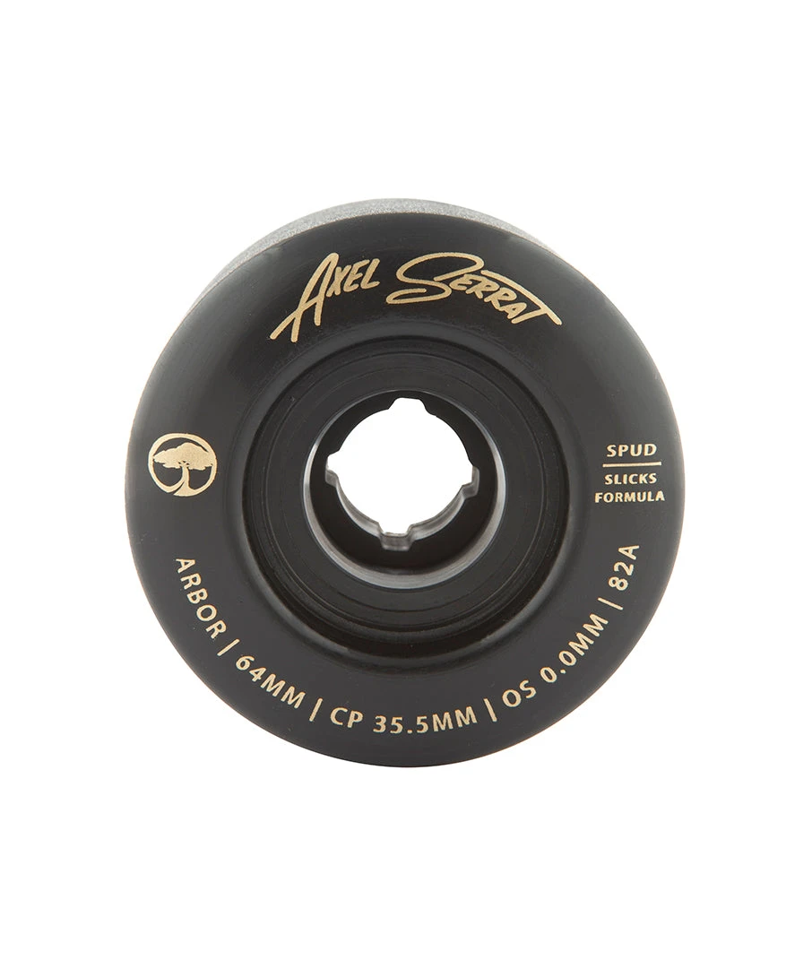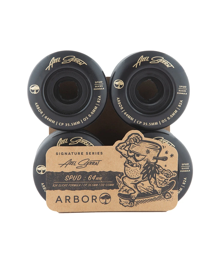 Axel’s choice for big hills and long slides, the Spud can hold its own on both urban freeride spots and steep mountain roads. Our 82A Slicks Formula urethane offers effortless slides while the center set Groovetuve Core provides durability and control.ย