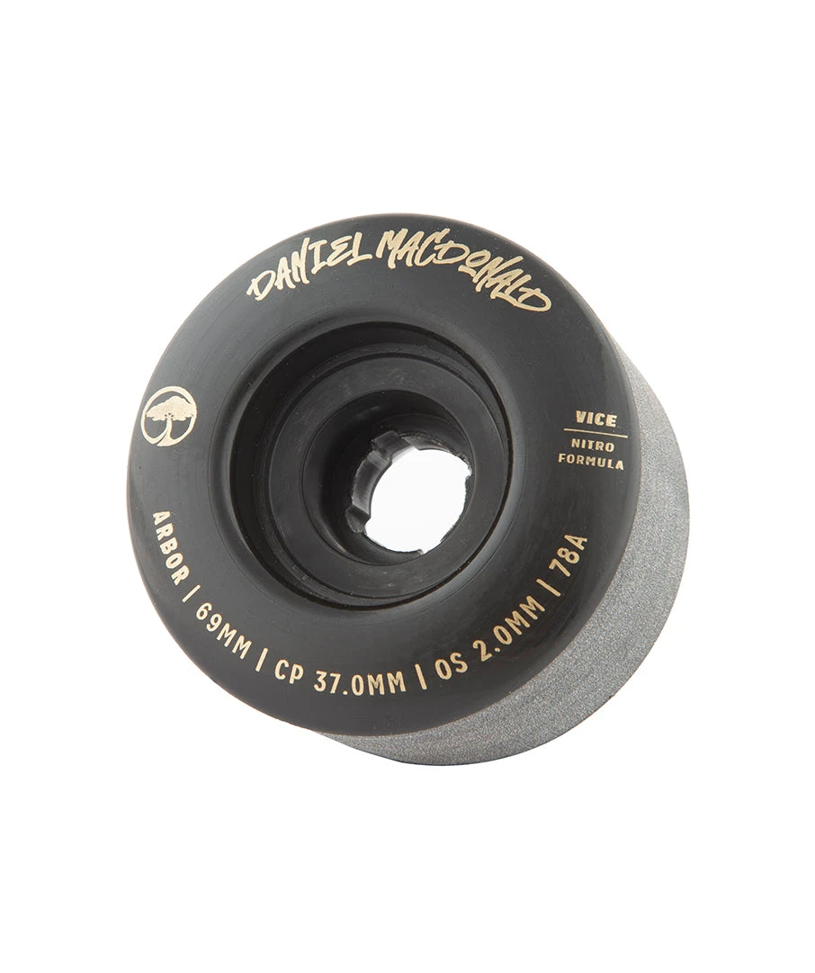 If you’d rather drift the whole corner than dial in your race line, you’re thinking like Danny Mac. A 69mm shape with an offset Groovetuve Core delivers the speed and stability needed for demanding terrain, while rouned lips and our 78A Nitro Formula urethane provide a forgiving slide for the freedom to leave thane lines anywhere and everywhere.ย